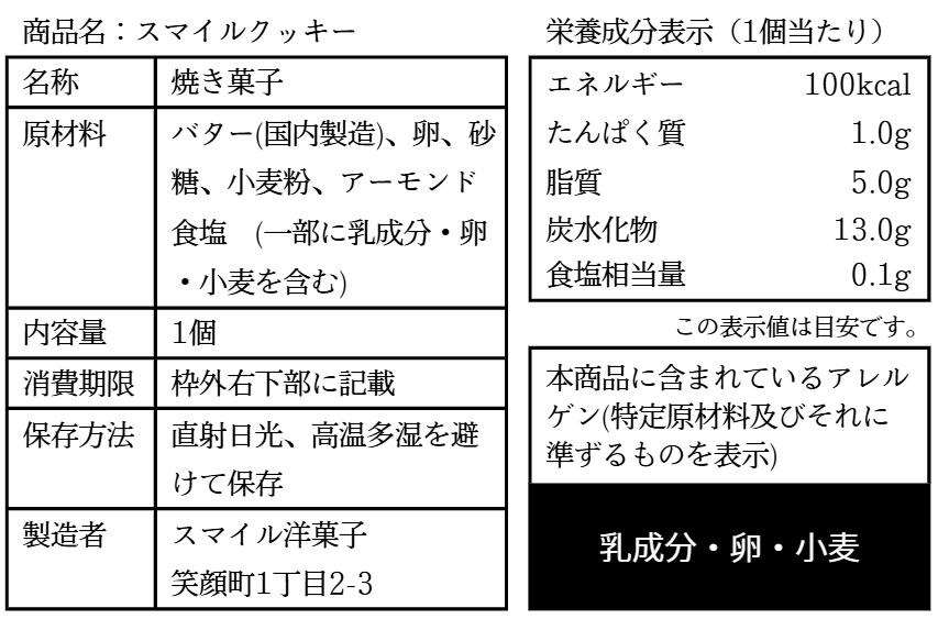 アレルゲン表示は、食品アレルギーを引き起こす物質(アレルゲン)を表示します。