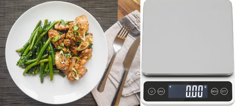 重さを測るコツとして、「食べる前の皿ごと測定したもの」から「残った皿など」を差し引いて計算するといいです。