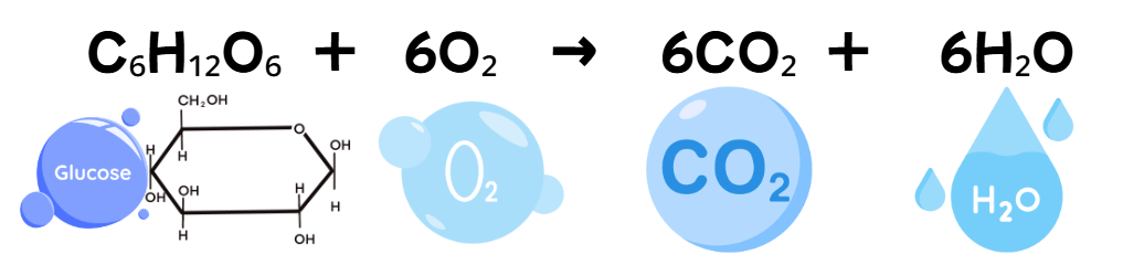・ブドウ糖+酸素→二酸化炭素+水+ATP(エネルギー通貨)