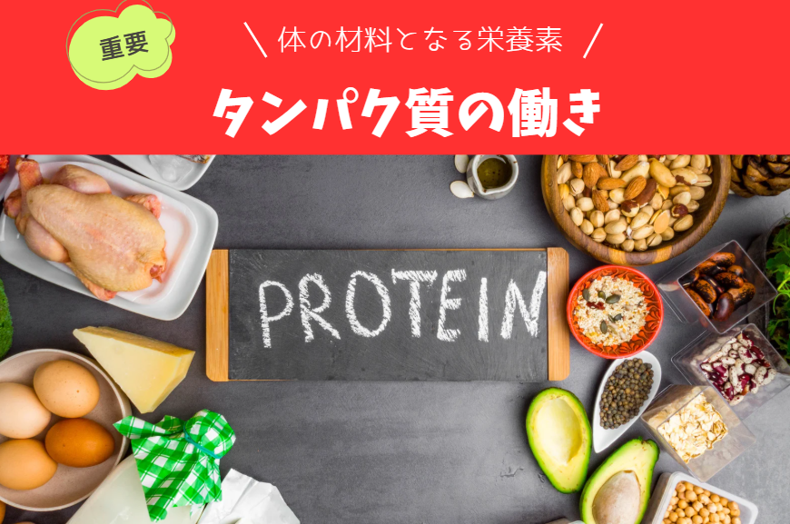 タンパク質は、アミノ酸が結びついてできた物質であり、主に体の材料となる栄養素です。